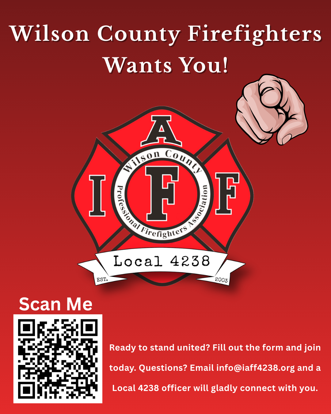 We fight for safer staffing, better equipment, stronger benefits, and the well-being of every firefighter, EMT, and paramedic who serves Wilson County. When you join our Local, you become part of a family committed to protecting each other on and off the job.Why Join Local 4238?